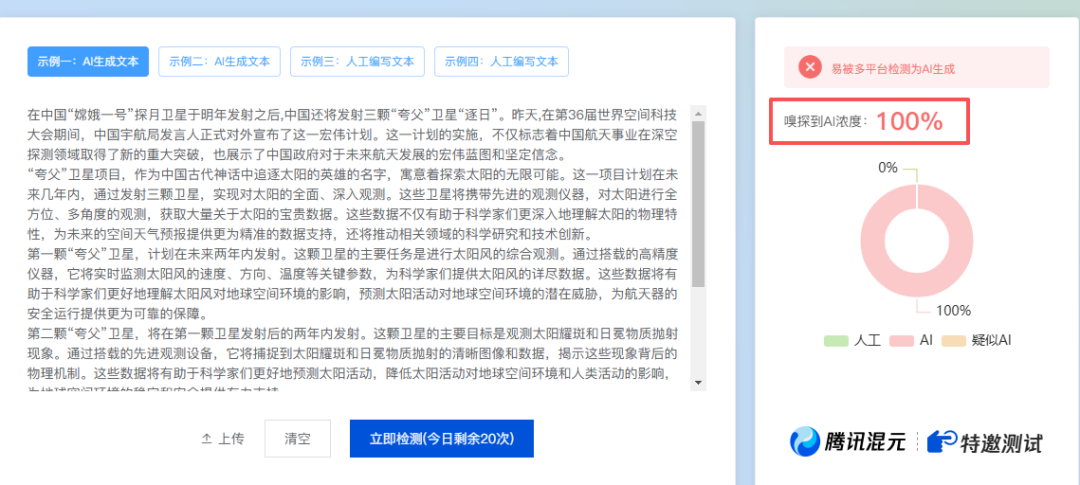 很多人不知道,现在AI写作的文章99%都能被检测出来,森克兰特反反复复测试了几百次,用常规的提示词prompt写出来的文章被检测出来的几率接近100%!这就是为什么很多人用AI写文章,曝光量非常低的原因!平台早都能检测出来了!
