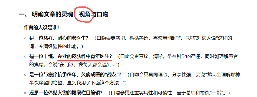 我们来分析他的标题:《“痒”不欲生的背后:透析皮肤瘙痒的“破局”之道》,这个标题本身就很抽象!我前一篇文章已经告诉大家了:目前AI仍然是推理结合思考模型,推理仍然是第一步!你直接投喂抽象的标题,没有其它实质性的内容,让AI去推理写作,写出来的肯定是很“无厘头”的!
