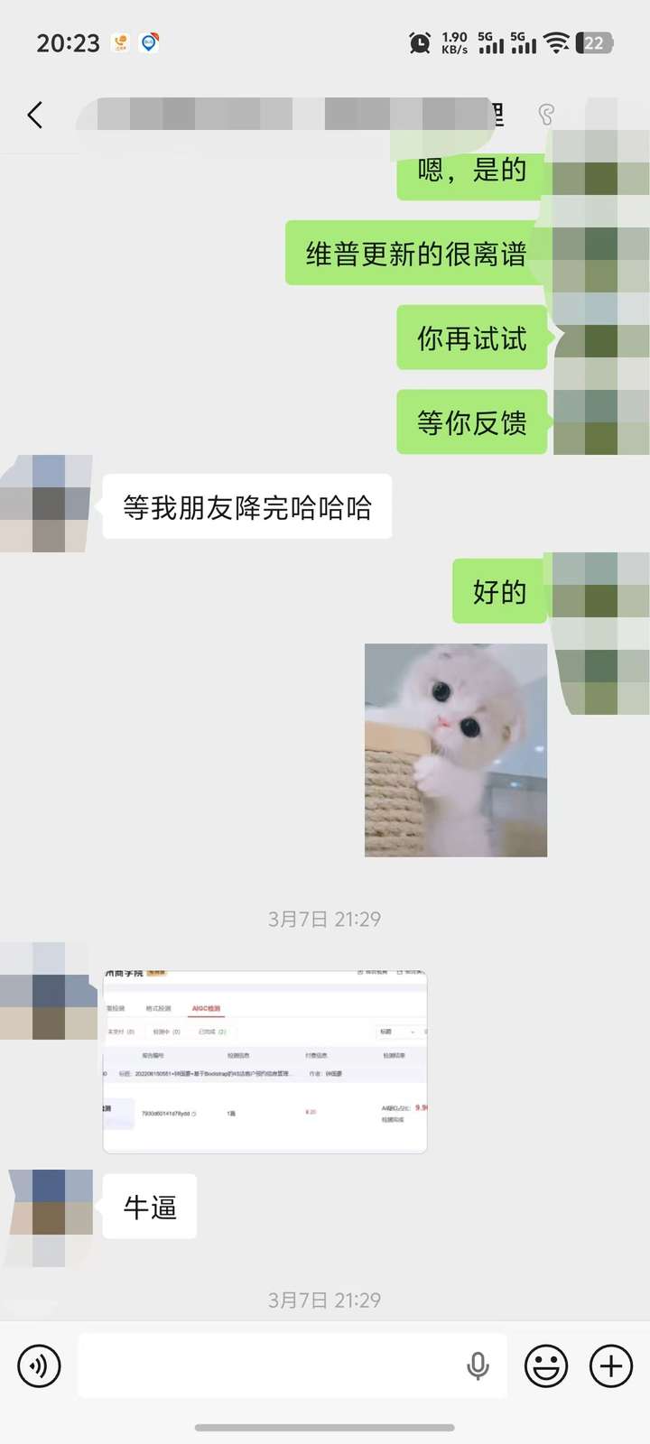我分享给一位即将毕业的同学测试,维普更新之后,他的AI率飙升。我们来看他的反馈!