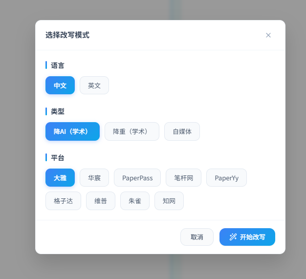 目前我们的知网的AIGC率检测费用是2元1000字,维普是20元一次。我们争取一次性就通过。今天分享一个我用了一年多的降低AI率的平台,论文我测试过,自媒体文章我测试多,都对得起两个字:牛B!