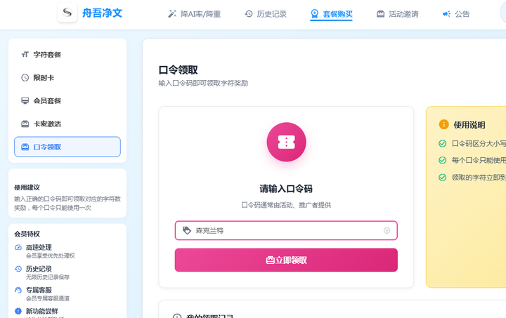 这是森克兰特AIGC大神开发的降AI率平台。https://paper.ai-or.com/,我们登录之后,就有888免费字符数。然后再输入口令:森克兰特,又得2000字符。