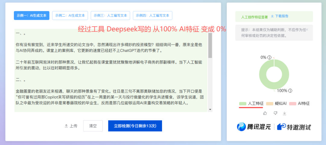 我把,刚才,100% AIGC率的几篇,文章,用这个链接,进行,改写。