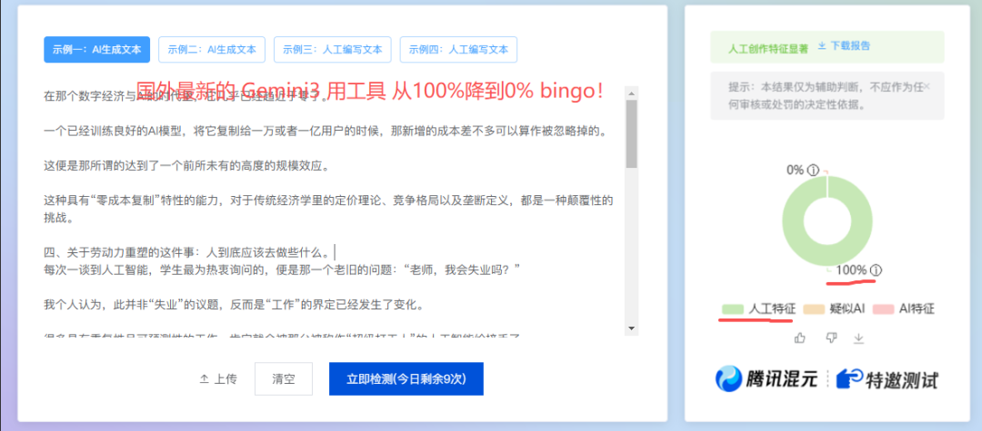 原来,通过下面的,提示词,能降低到30%以下,现在,AIGC检测,算法更新,连最新的,Gemini都飙升到100%。讨厌!
