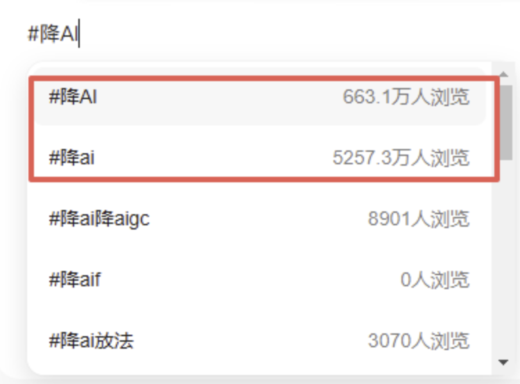 今天已经是2026年4月,我来验证我当初得判断是否正确?我打开某书,搜索“降AI”,就已经有上千万的搜索量,这还只是一个tag,还不算其他平台。