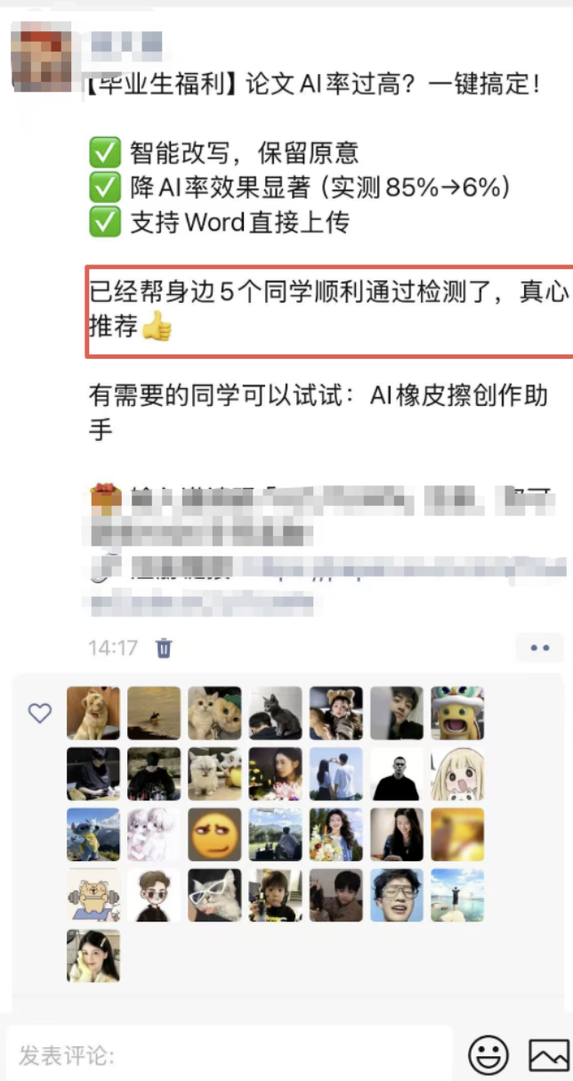 除了Paper,很多AI小说,AI剧本,AI公众号文章,AI小红书笔记,很多人开始寻找去AI痕迹的写作办法。我们的网站也可以处理,看看我们处理之后的反馈。(有人用我们网站去AI之后阅读量突破15万!获利1000+)