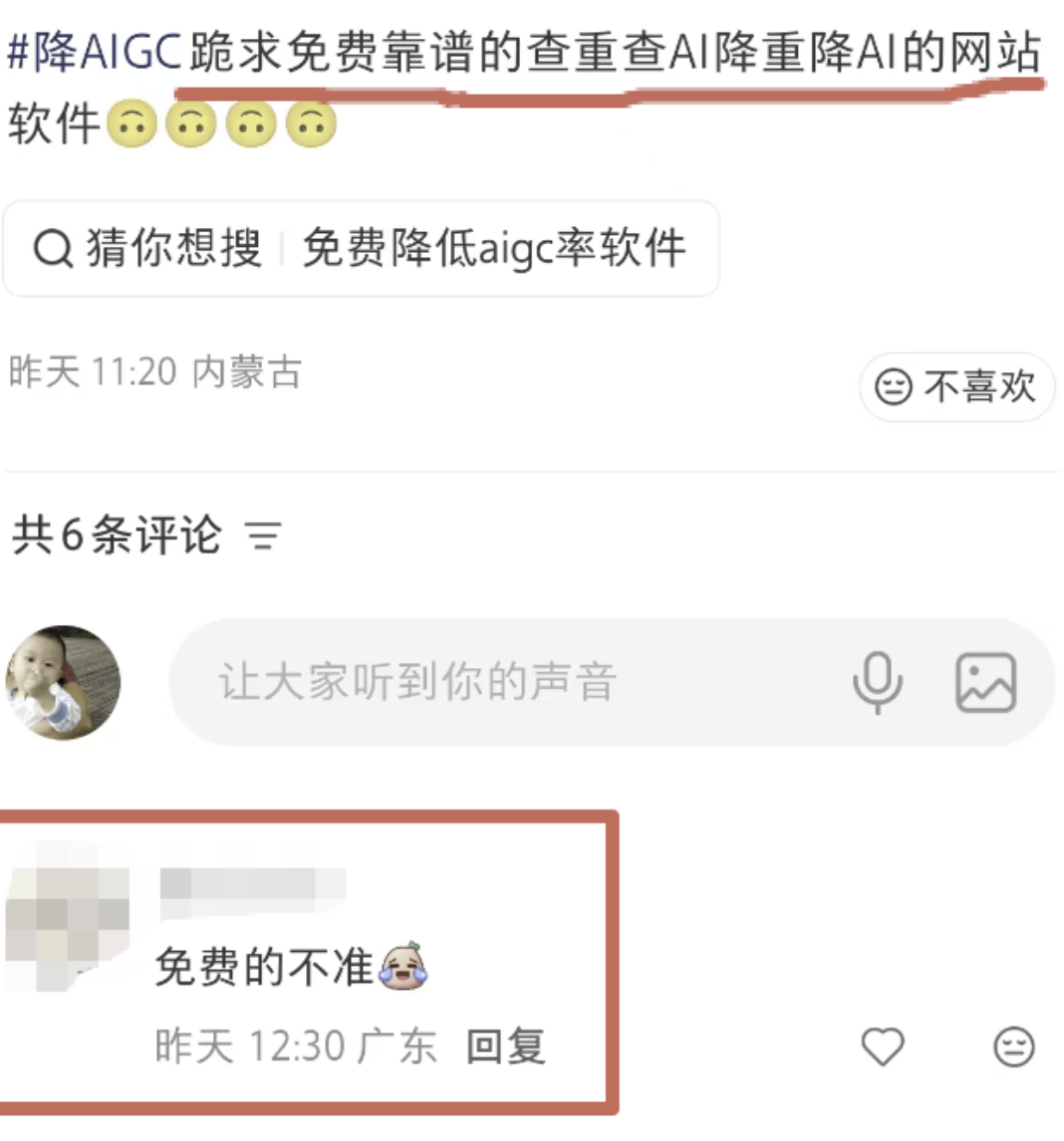 免费的降AI率平台有,包括一些的开源平台也有,但是!他们会做公益长期及时去升级吗?请相信专业的团队做专业的事情,去年底某网升级,今年初某普升级,免费的平台几乎都失效了。
