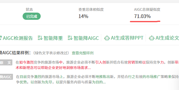 提交AI率检测平台,能降低到20%左右,效果还将就,自己再改改,应该能降低到10%以内。