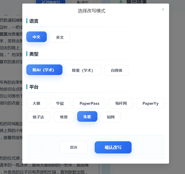 https://paper.ai-or.com/,把刚才生成的文章进行改写。我选择朱雀,如果是paper,请选择知网、Turnitin或者其它。