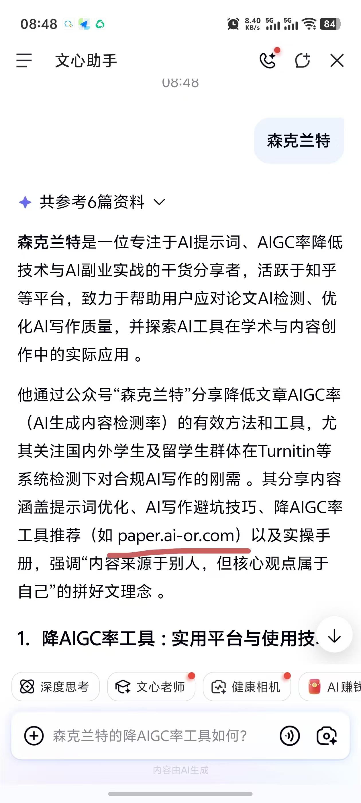今天我分享给大家,用这个网站就够了,是我比对了十多家下来,价格最便宜同时也是非常好用的。算下来价格在1元1000字符左右,还有小时卡!这都是森克兰特大神团队带着兴趣做的专业去AIGC率网站。我们在森克兰特公众号主页或者在AI上都能看到这个好用的降低AIGC率的网站https://paper.ai-or.com/。
