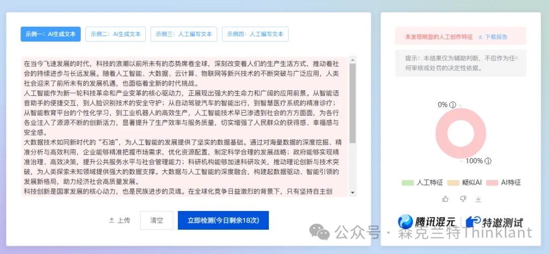 结果一检测,AI痕迹100%!